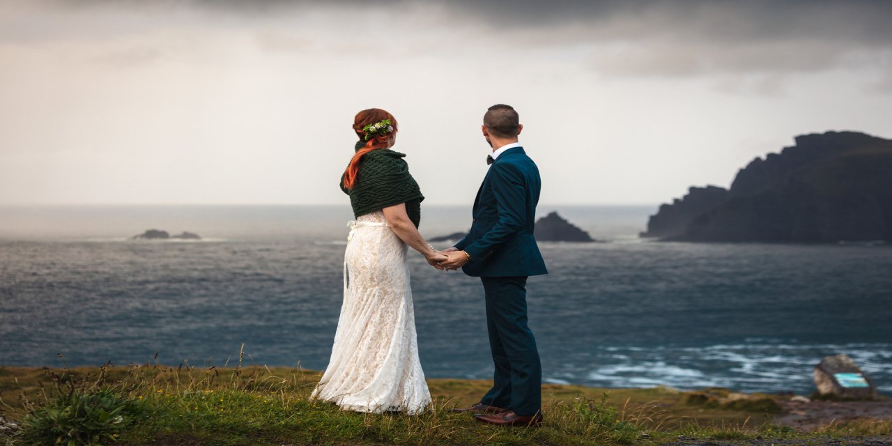 couple capturing image at Slieve League Mountains